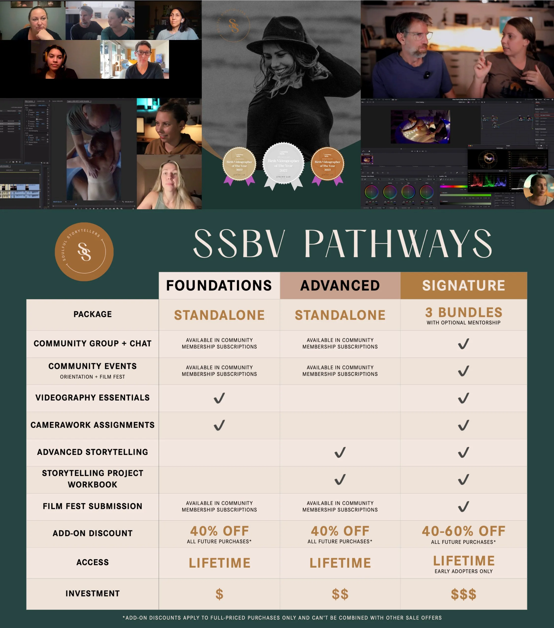 All SSBV Signature course memberships come with ongoing (lifetime) access. You can return to the lessons, assignments, and resources whenever you need — and continue growing at your own pace. Community events like live Orientation and the Film Festival also repeat with each intake, so you’ll always be invited back.